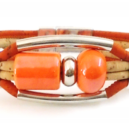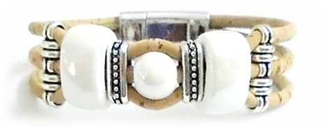 Bracelet glamour en liège, céramique blanche intercalé avec éléments argentés.