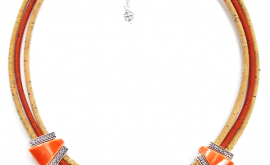 Collier cordon liège, céramique orange