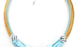 Collier en liège céramique rectangulaire aigue-marine