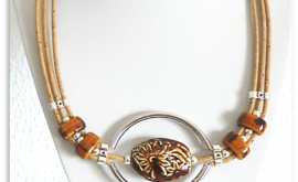 Collier en liège triple tour, combiné avec de la céramique ,ainsi que des éléments argentés. Fermeture mousqueton.ajustable Les … Lire la suite de Collier en liège Tribal