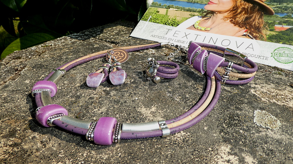 Cet ensemble en liège combiné avec de la céramique mauve
