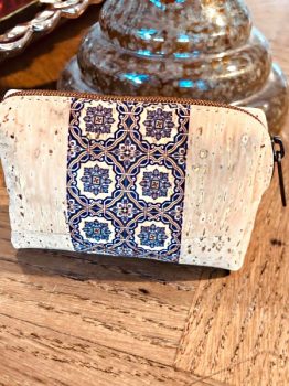 Shoulder bag made of cork fabric,printing inspired by Portuguese tiles