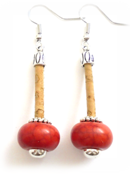 Cork earrings,white ceramic