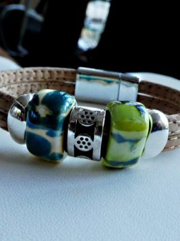 Cork bracelet, green ceramic