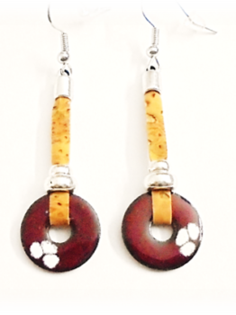 Long Cork earrings , with tribal pendant