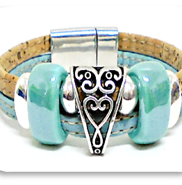 Cork bracelet, Portuguese filigree and light blue ceramics