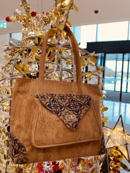 Shoulder bag made of cork fabric,printing inspired by Portuguese tiles