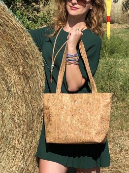 Shoulder bag, made of cork fabric, exclusive golden pattern