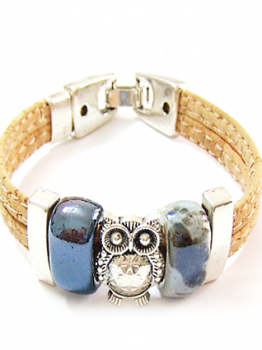 Cork bracelet gray ceramic and owl