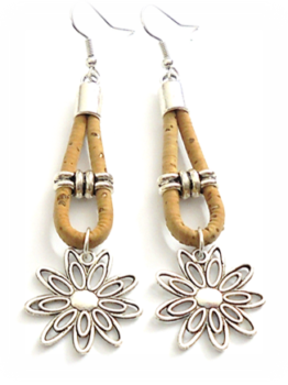 Long cork earrings with flower pendant