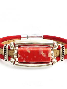 Cork bracelet, red ceramic