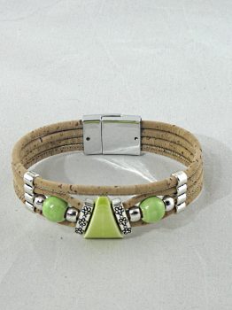 Bracelet contrasting natural cork and green, rectangular ceramic and silver elements.