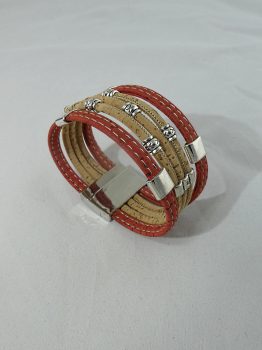 Original, elegant, this cork bracelet 5 rounds in coral and natural color