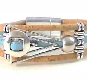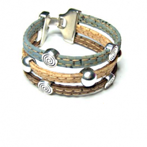 Cork bracelet, Portuguese filigree and light blue ceramics 22,00