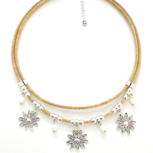 Cork necklace wiht flowers & pearls 30,00