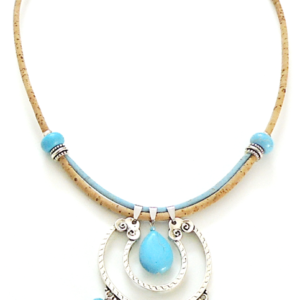 Cork long necklace, large turquoise drop pendant 35,00