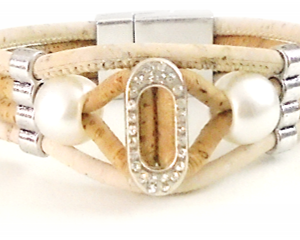 Glamour bracelet in cork, pearls & rhinestones 20,00