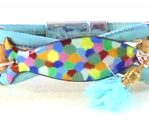 Cork bracelet, blue flowers ceramic 22,00
