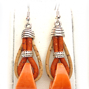 Cork earrings, with orange ceramic 16,00