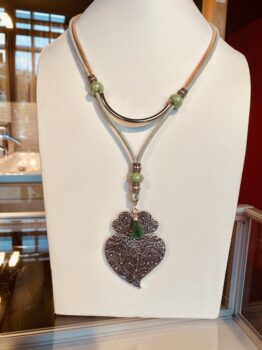 Cork long necklace, filigree heart