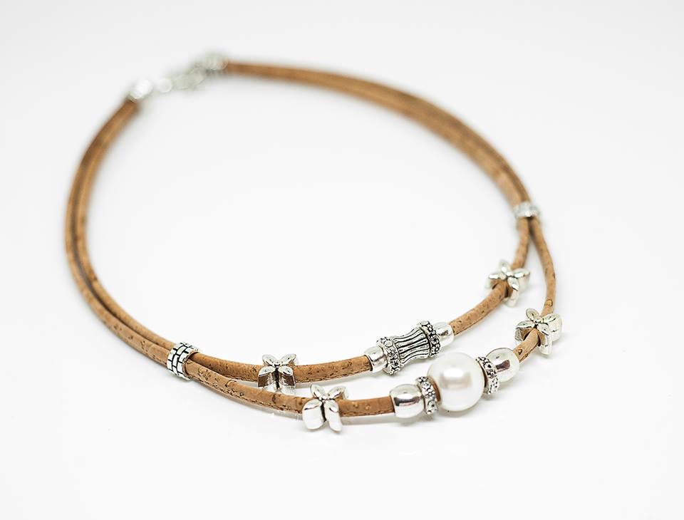 Bague en liège, elements ronds argentés