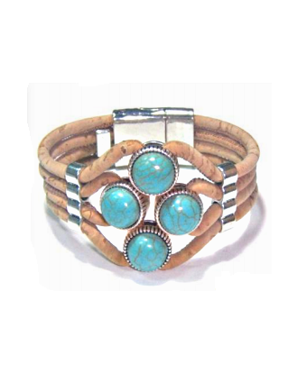 Bracelet en Liège , éléments turquoise
