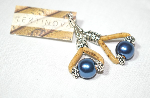 Boucles d’oreilles en liège perles bleu